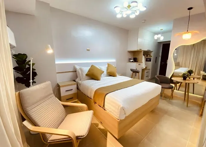 A Secret Space In Sucat Paranaque apartment is 10 minutes’ drive from Ninoy Aquino International airport. Guests can take a dip in a private pool to relax after a long day.